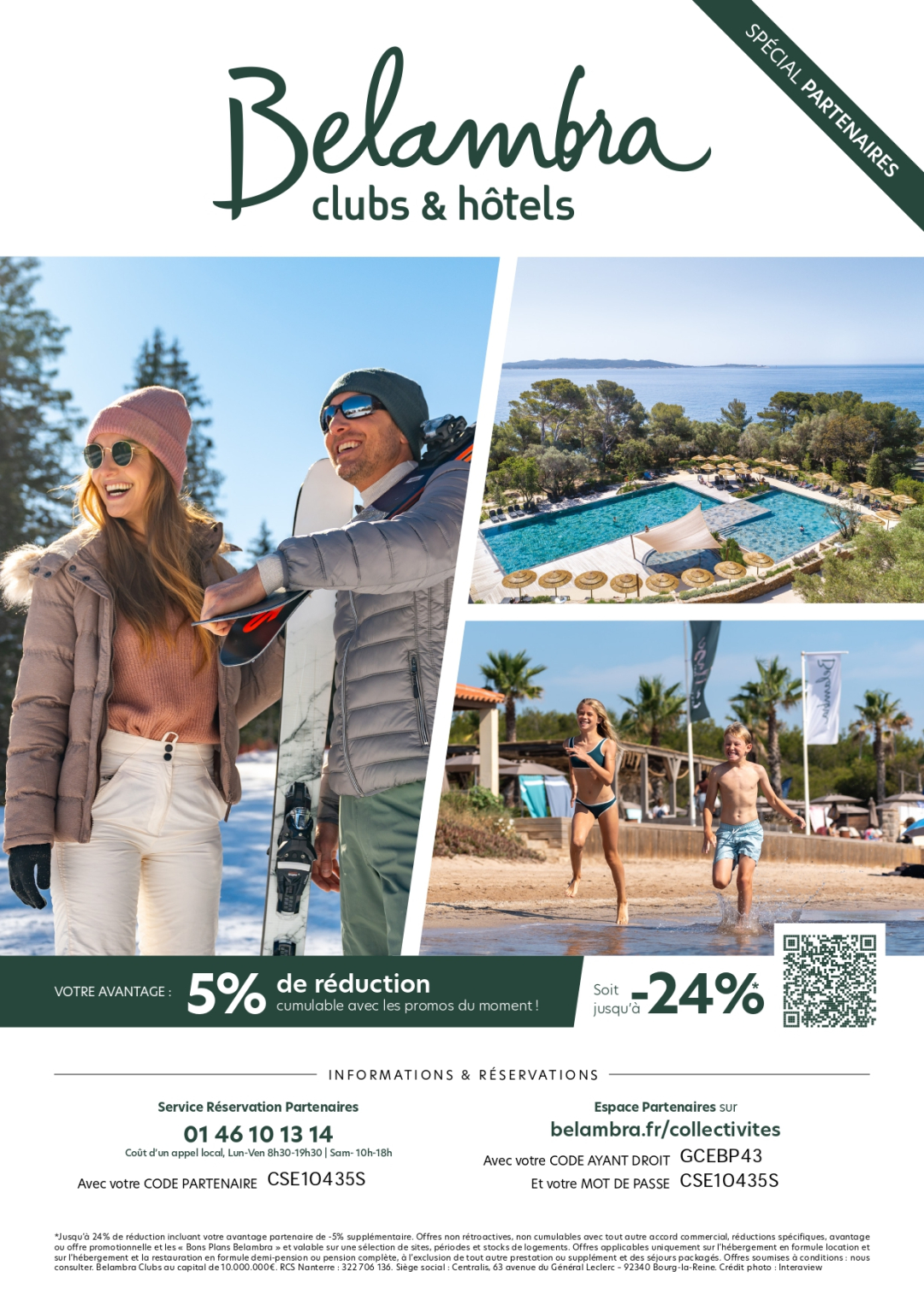 ![]() BELAMBRA CLUB § HÔTELvacances | 63 Avenue général Leclerc 92340 BOURG-LA-REINE 06 70 88 89 70 Contact mail | Connection sur le site internet Belambra : id:GCEBP43 MDP: CSE10435S