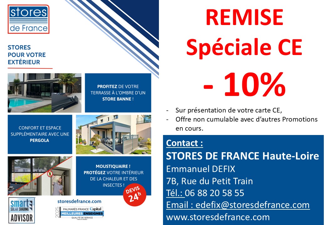 Stores Frances haute LoireVentes stores /pergolat | 7B, rue du petit train 43700 COUBON 06 88 20 58 55 Contact mail Site web |